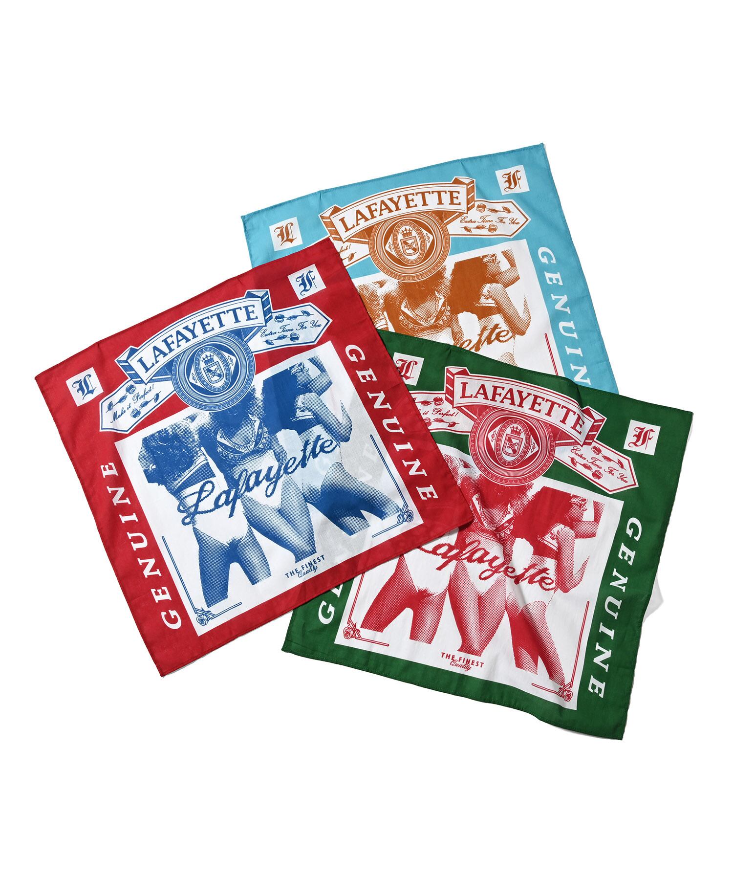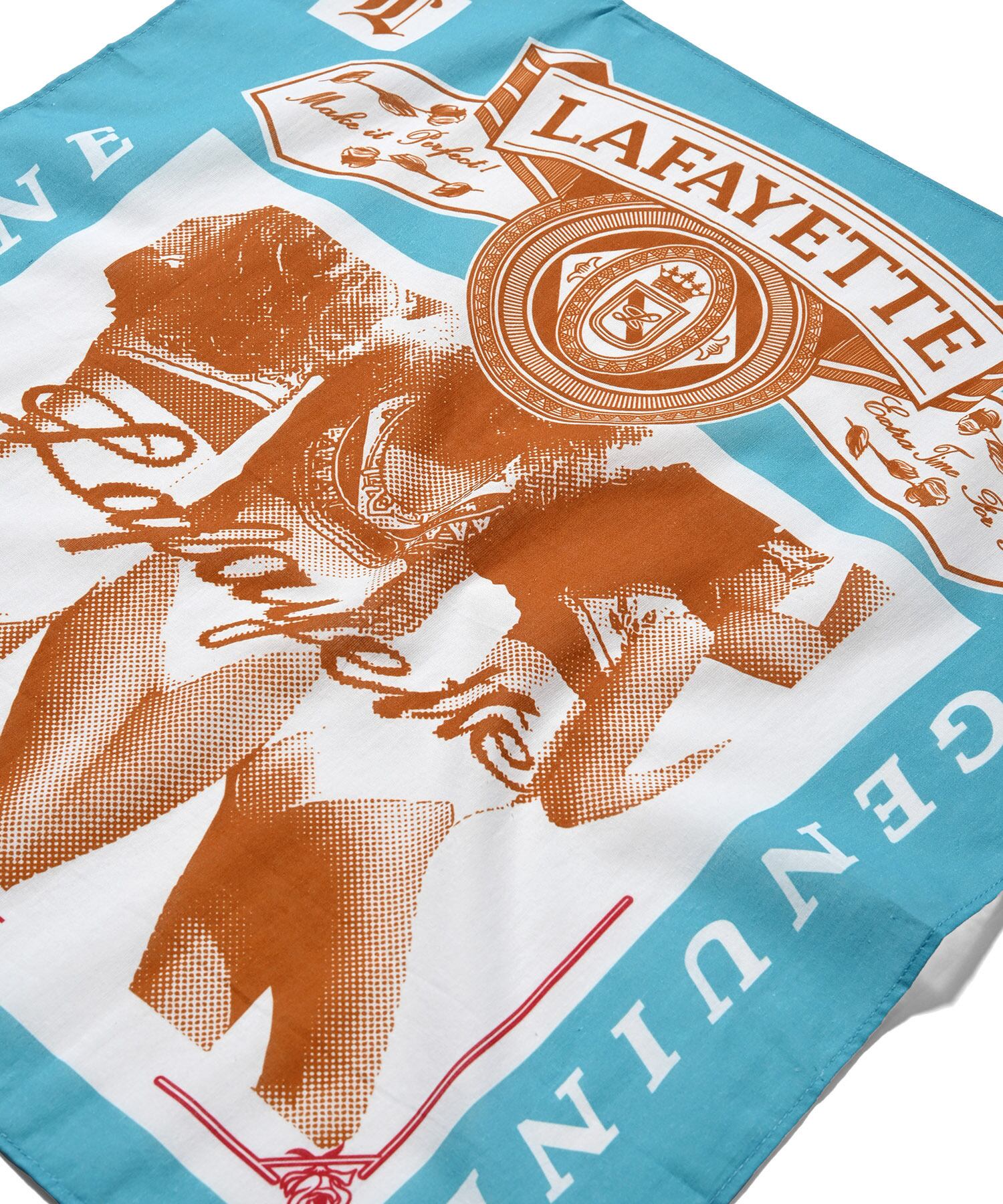 アメリカを代表するビールのメーカーの広告をサンプリングしたグラフィックが目を惹くバンダナ。