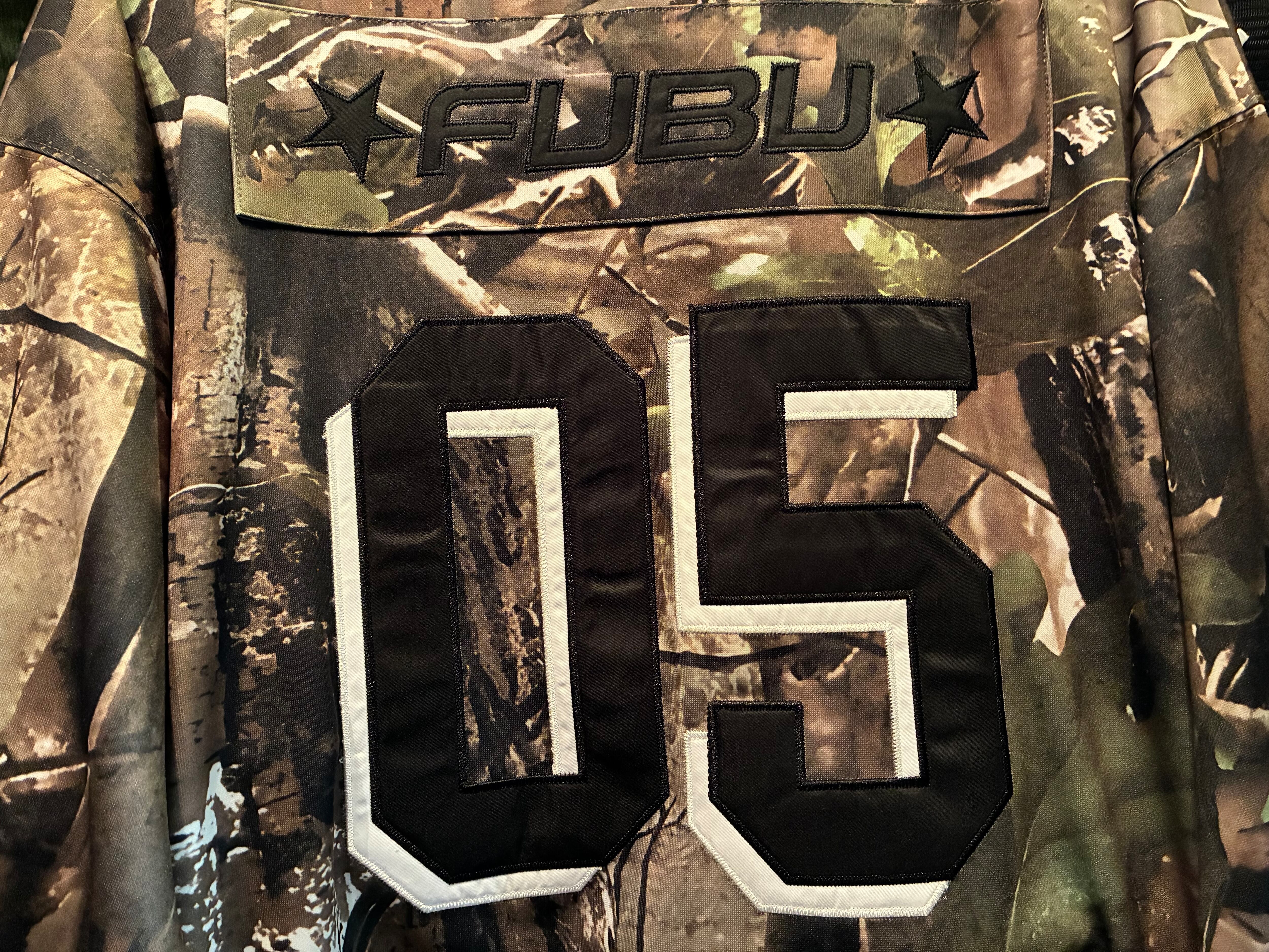 リアルツリーカモが存在感抜群のVネックのホッケーシャツ。