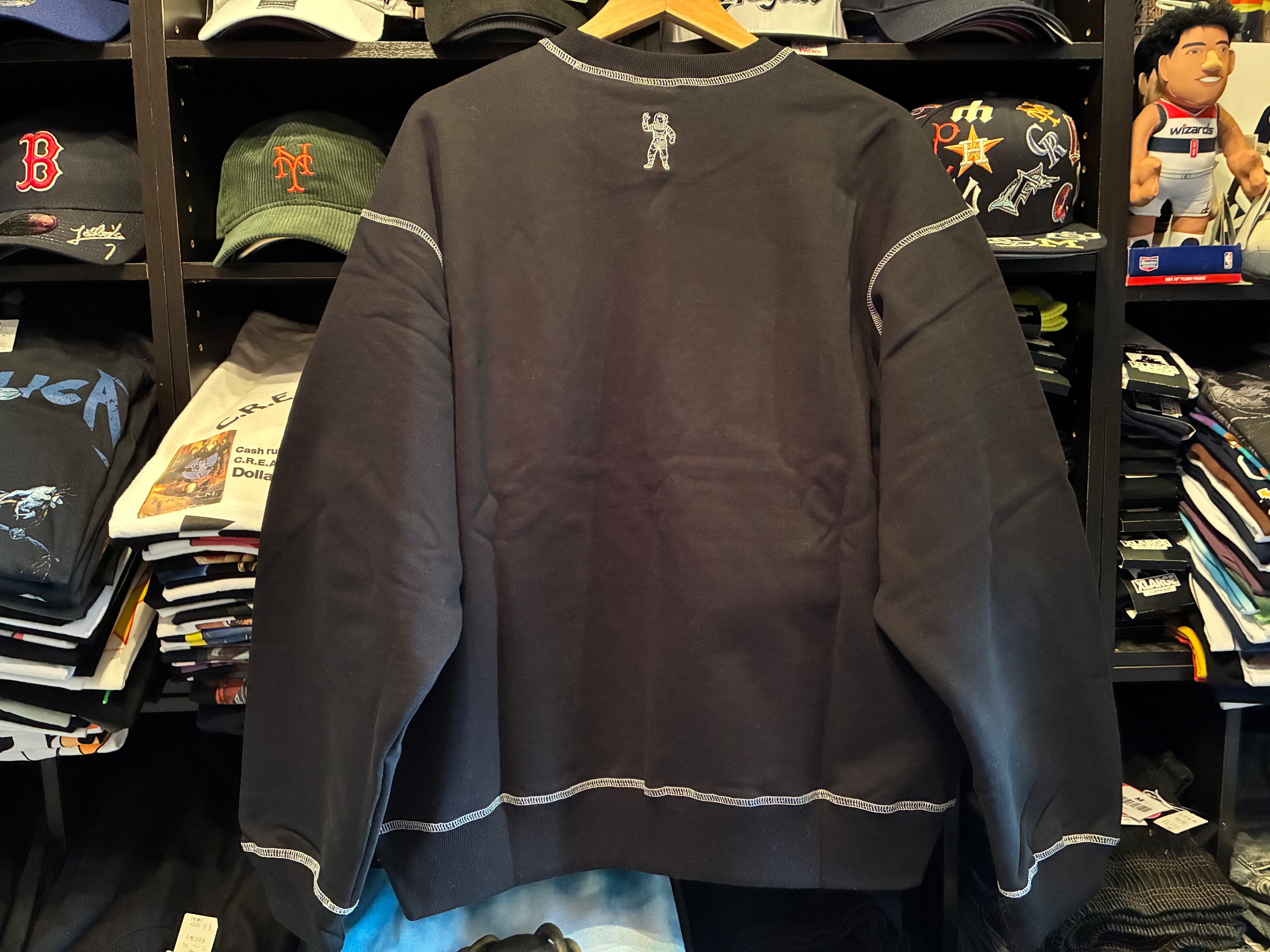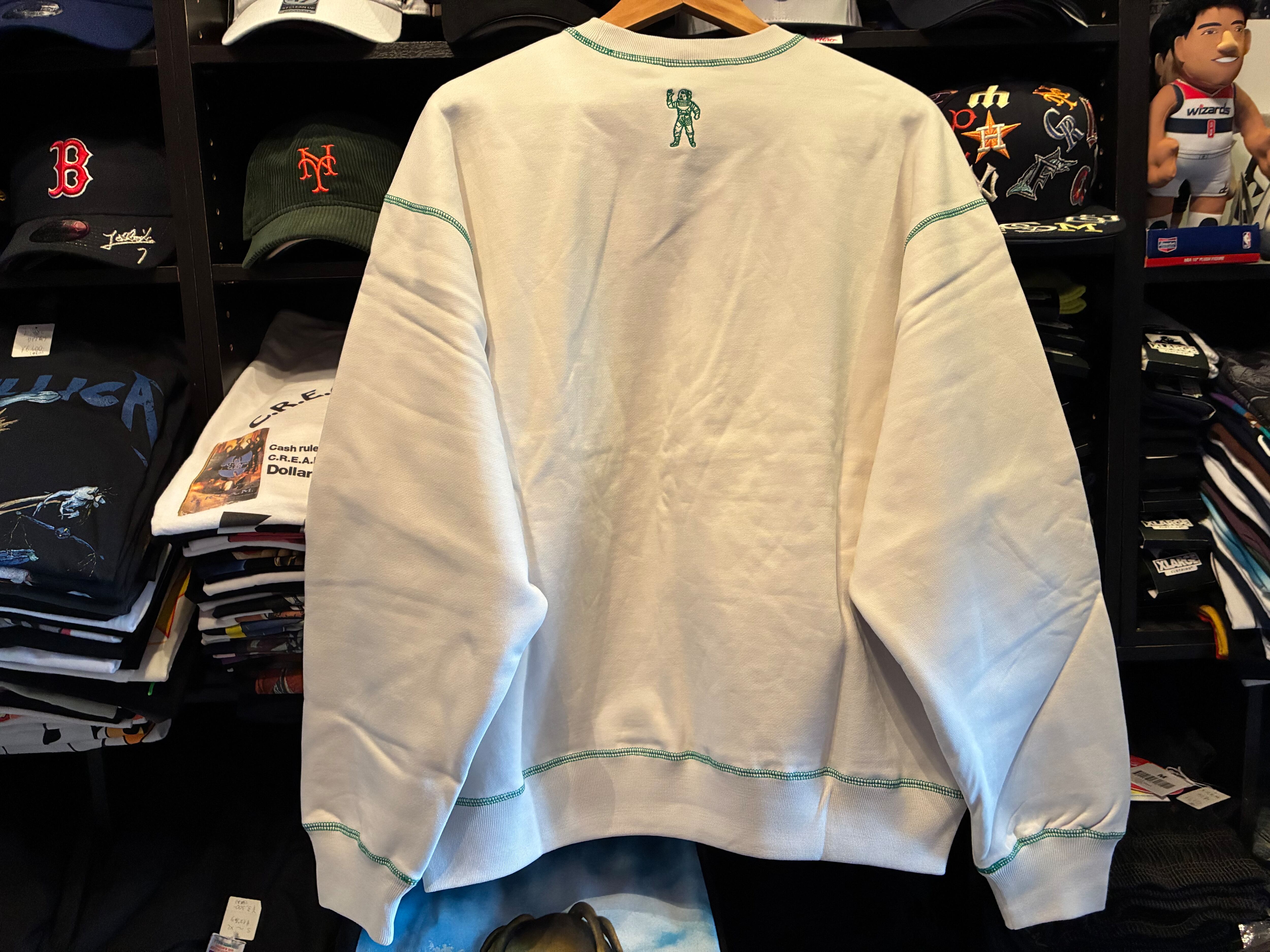 立体感あるラメ刺繍で象られたブランドロゴが、クラシカルな雰囲気の中に遊び心を添えるスウェット。