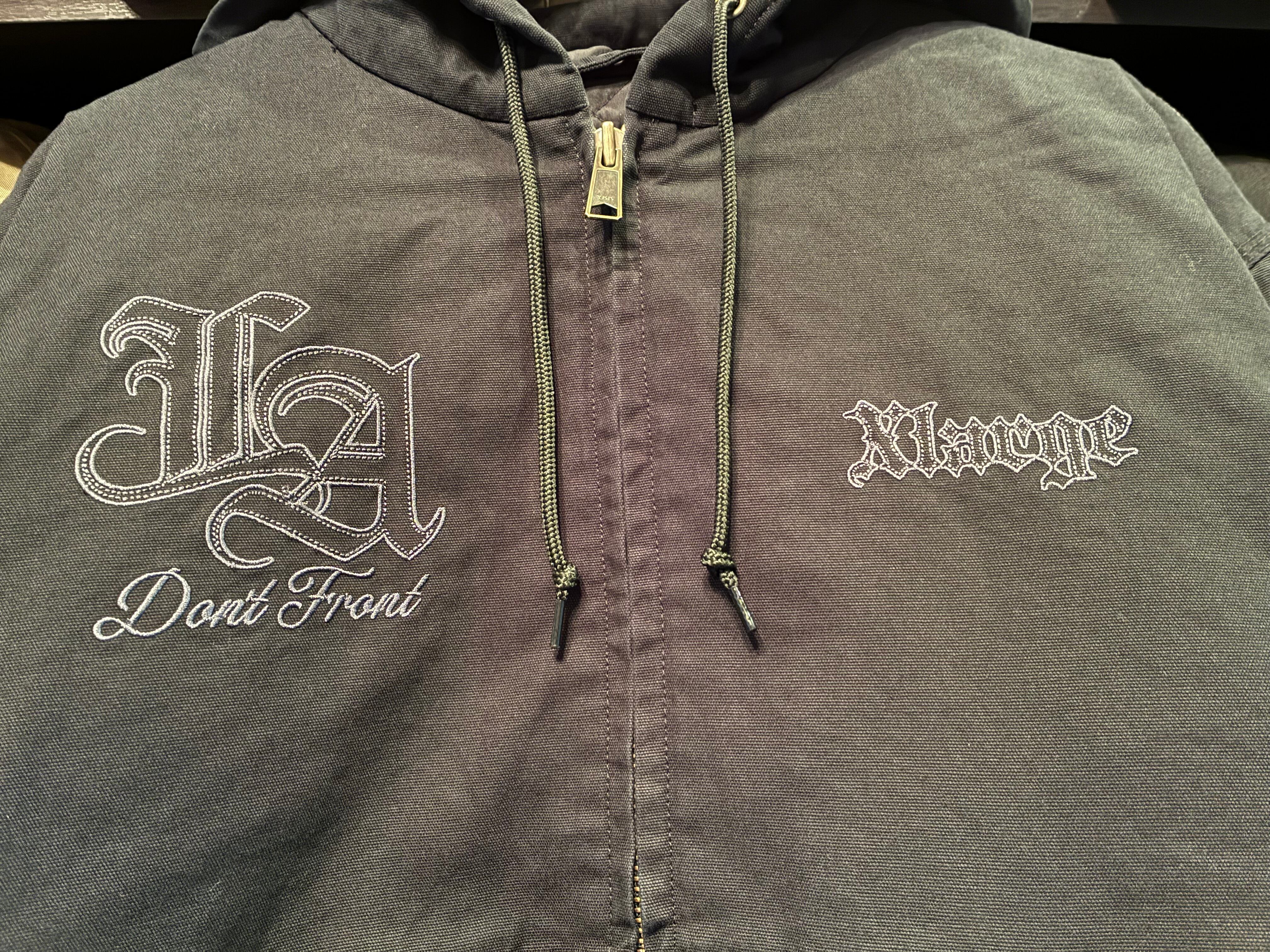 ・フロントの両胸とバックにロゴの形に縁かがり刺繍