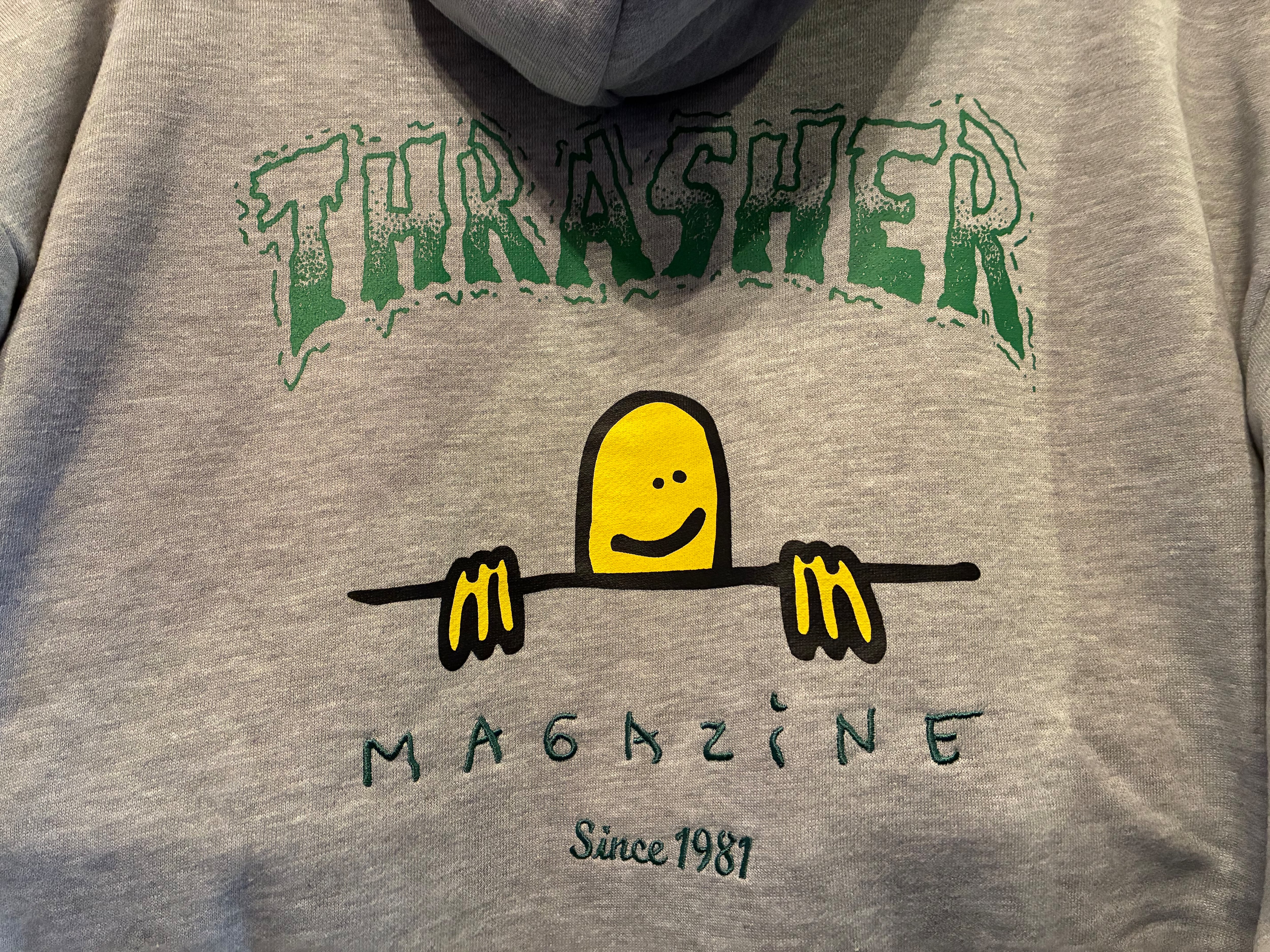 スケーターなら1度は憧れるブランドで1981年にスラッシャー・マガジンから生まれたブランド。サンフランシスコでEric Swenson、Fausto Vitelloが創刊して言わずと知れたUSAを代表するスケートボード専門誌THRASHER MAGAZINE。雑誌の刊行だけに留まらずそのブランドとしての地位は世界中の若者たちの間で確固たる物となっている。スケートボードだけの枠にとらわれずウェア、アートワーク、ロック、他のスライドスポーツ界に置いてもその独自の世界観はある種その手のサブカルチャーの代名詞にさえなっていると言っても過言では無い。