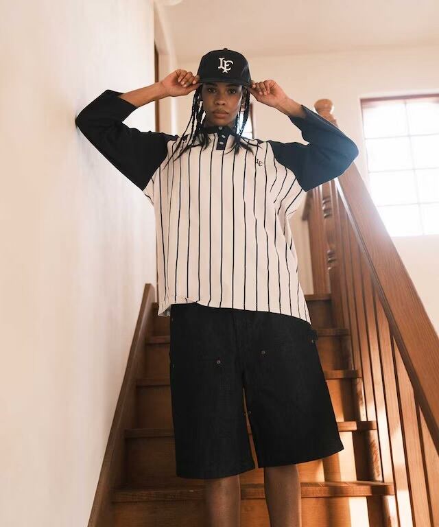 胸元にはオールドスタイルのLFロゴ刺繍をワンポイントで配置し、さりげないアクセントに。