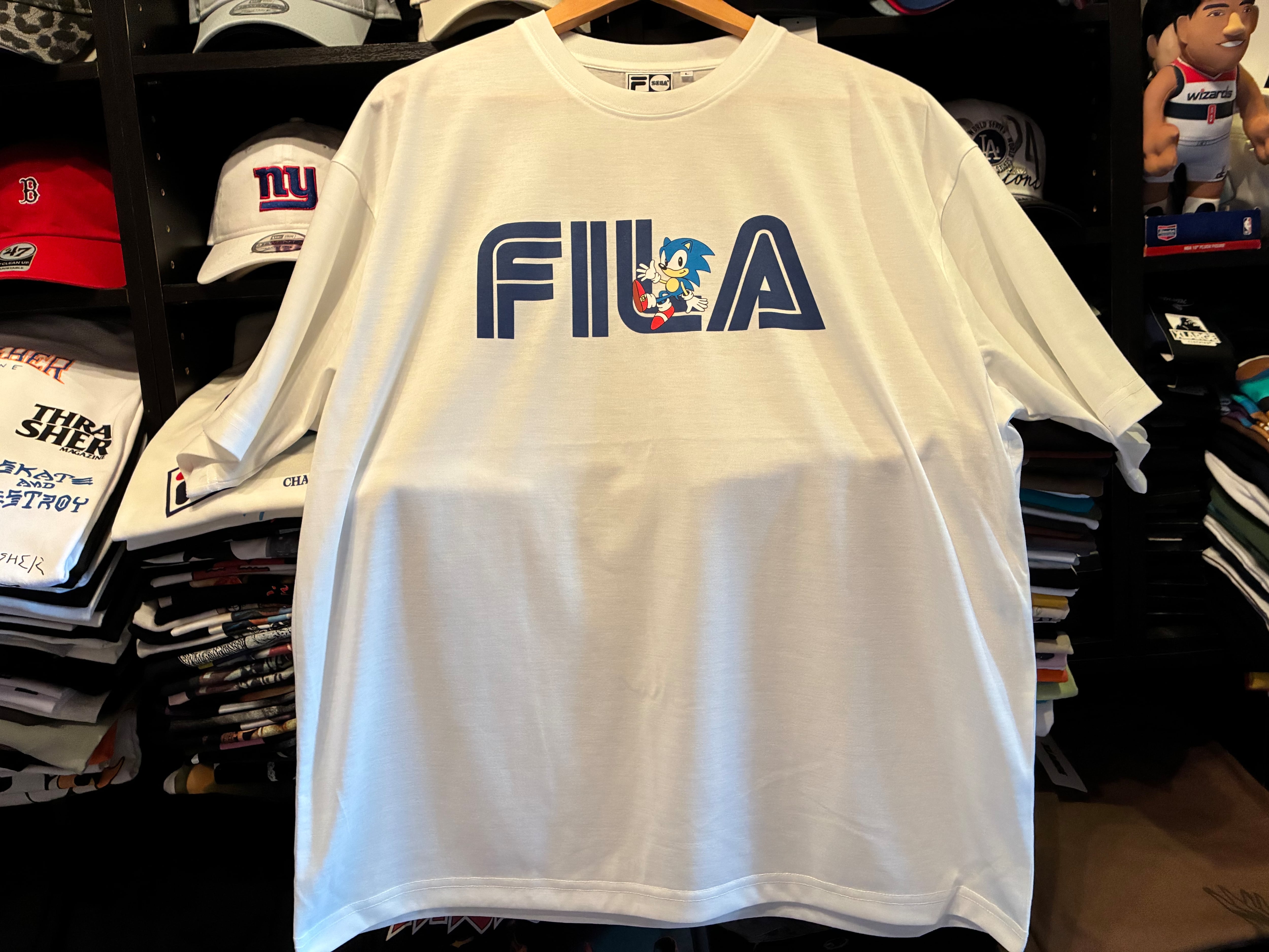 FILA/フィラ×SEGA/セガ・ソニックTee(ホワイト)コラボ ストリートファッション HIPHOP ラッパー ゲーム ソニック セガ ユニセックス SM6SAU707