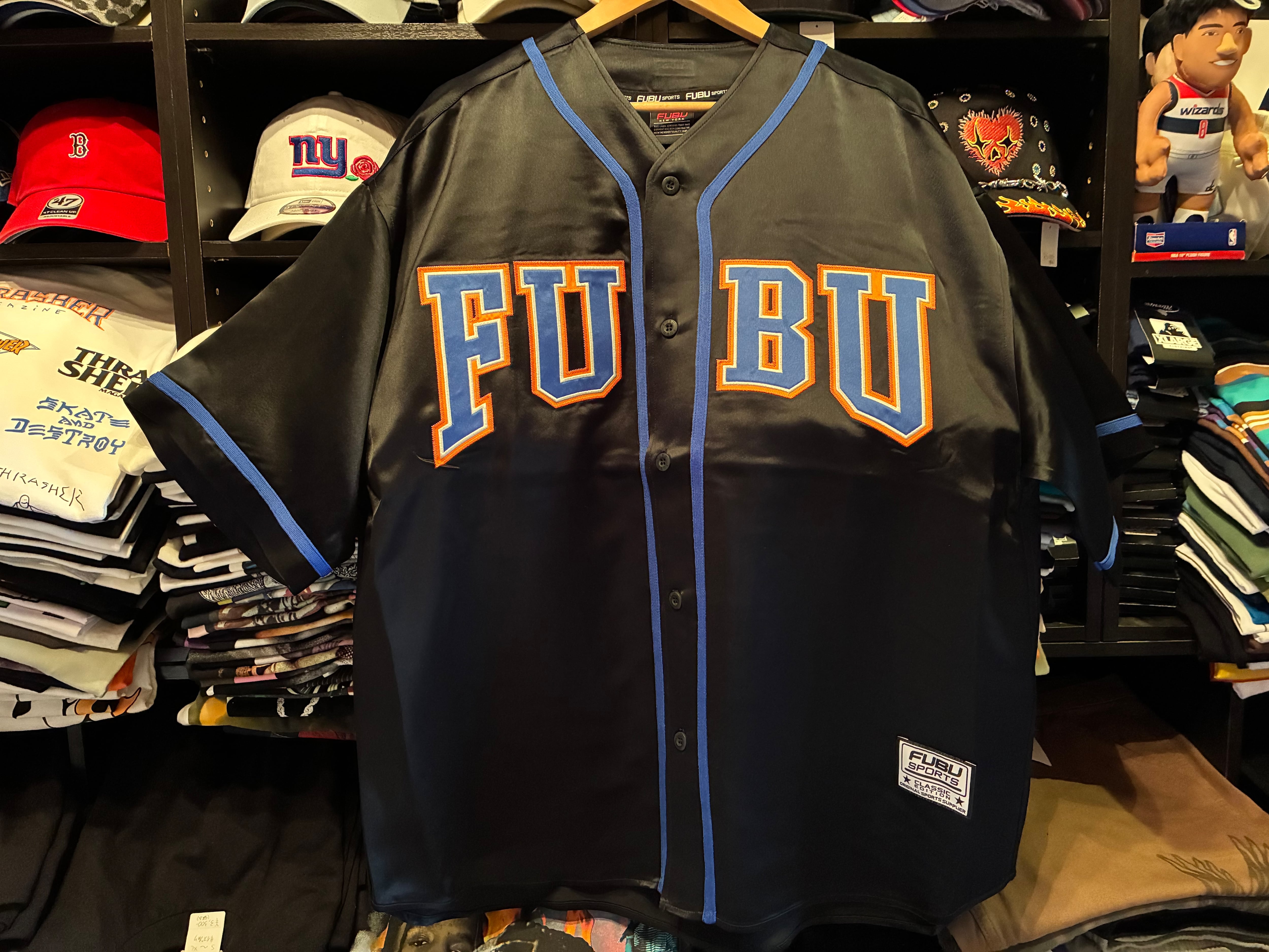 FUBU SATIN BASEBALL SHIRTS/サテン ベースボールシャツ【FAM-61100】BLACK
