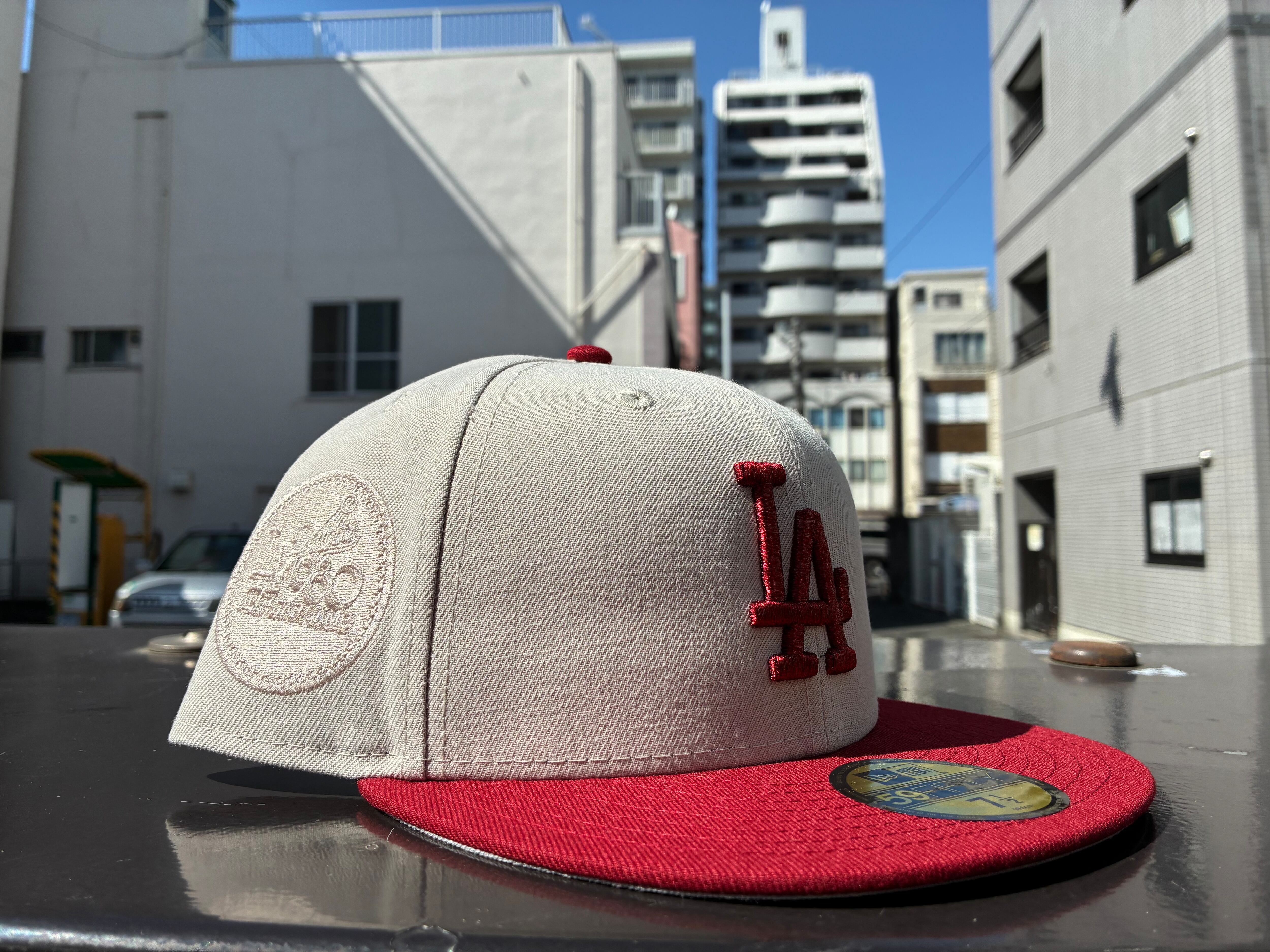 NEW ERA 59FIFTY Rising Sun ロサンゼルス・ドジャース ストーン レッドバイザー