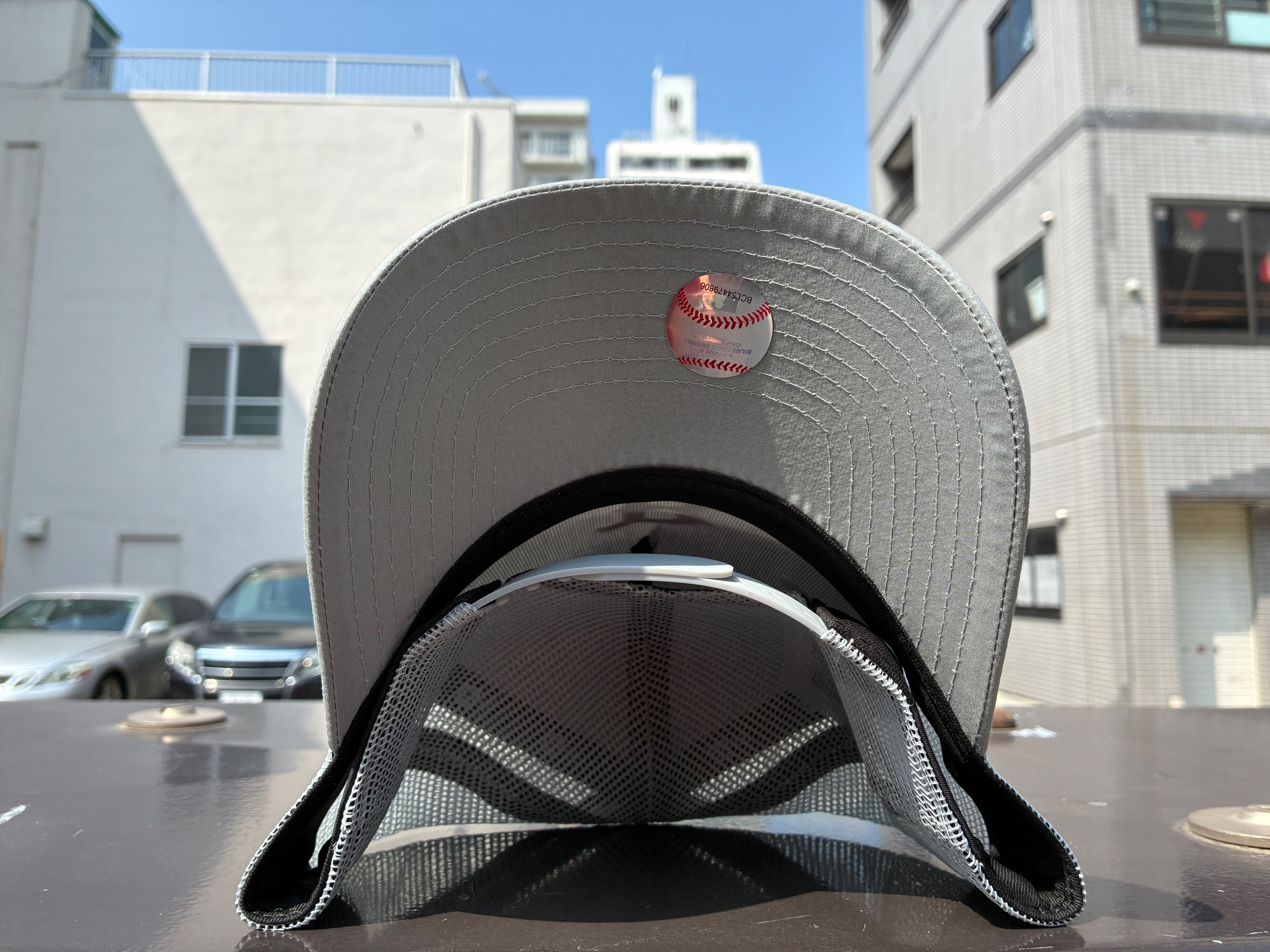 シルエットは9FORTYをベースに、フロント部1枚パネルにして上部をつまんだ独特のシルエットが特徴。フロントパネルの内側に独自の芯を作ることで型崩れしにくいシルエットが保たれます。少し深みがある被り心地です。