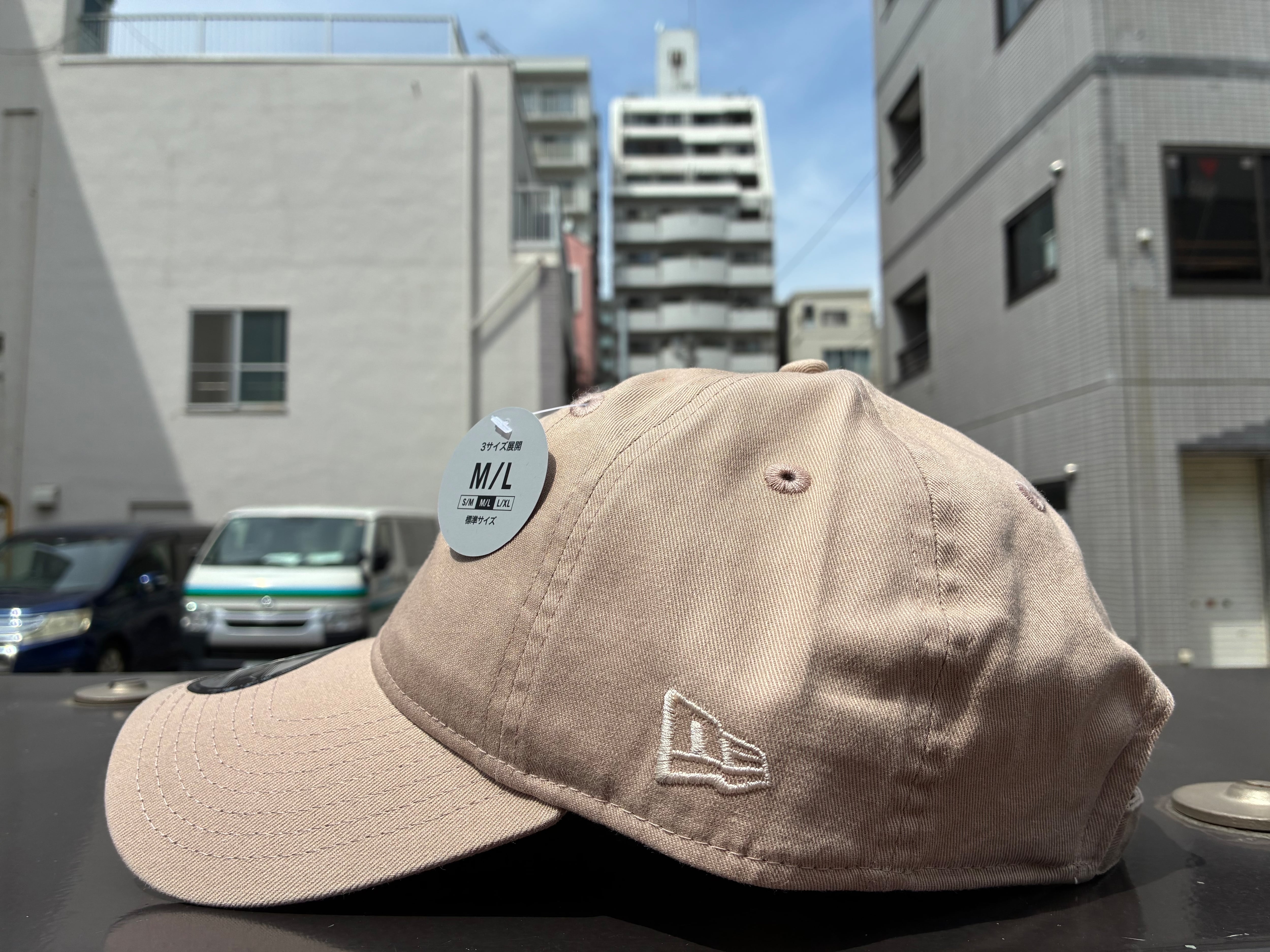 シルエットはフロント部分に芯がなく柔らかな被り心地が特徴の9TWENTY。汗汚れやファンデーション付着が目立ちにくい、カーキスウェットバンドを採用。リアのストラップ(サイズ調整するストラップ)でサイズ調整が可能。S/M(54cm〜58cm)、M/L(57cm〜61cm)、L/XL(61cm〜65cm)の3サイズ展開。