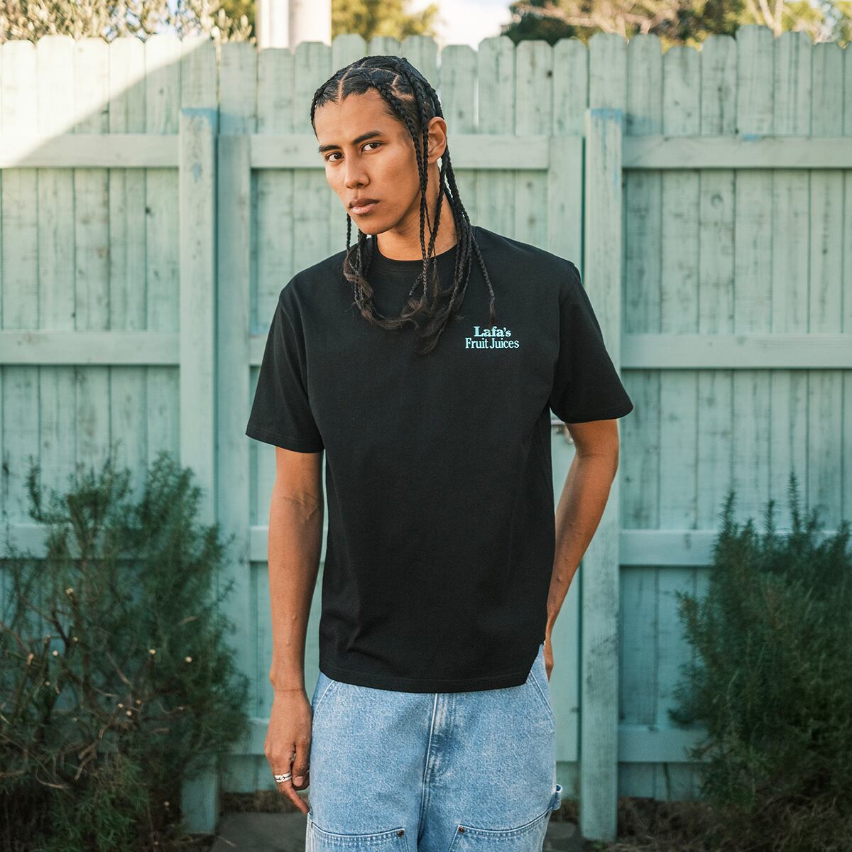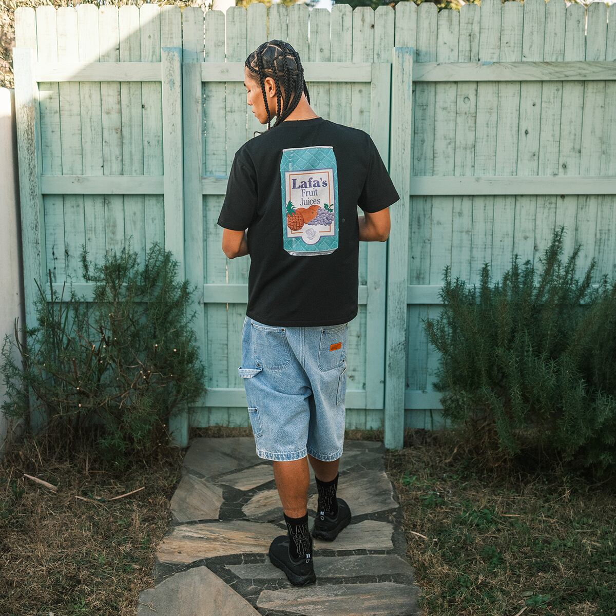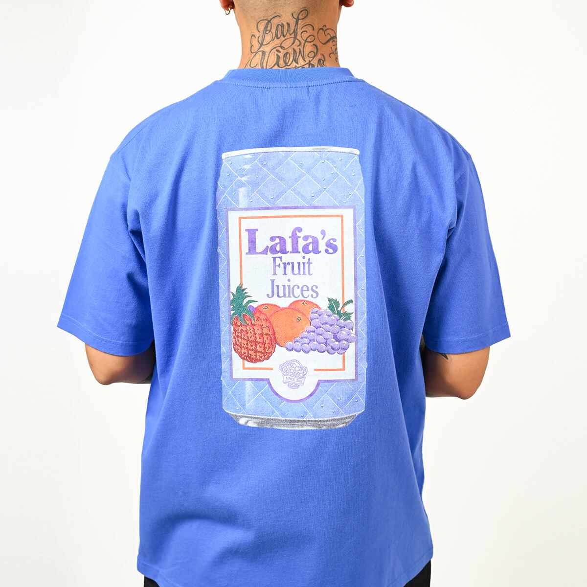 フロントは “Lafa's Fruit Juices” のタイポグラフィをシンプルに配置。