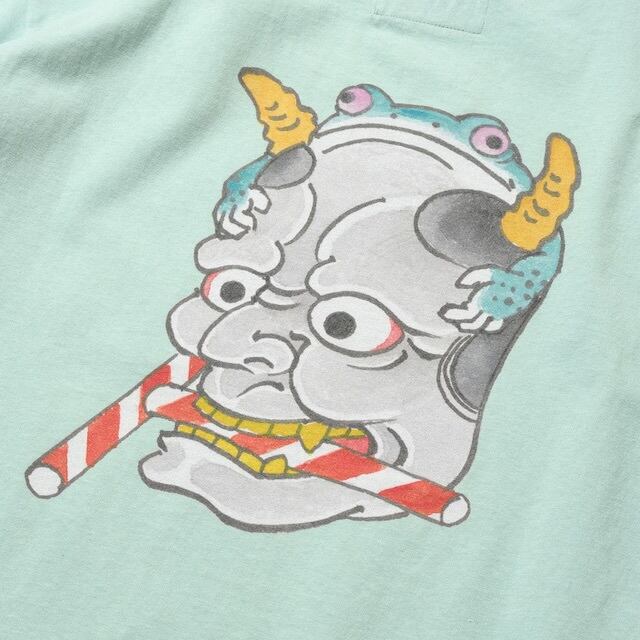 般若をモチーフにした蛙のグラフィックが強いインパクトを放つデザイン。