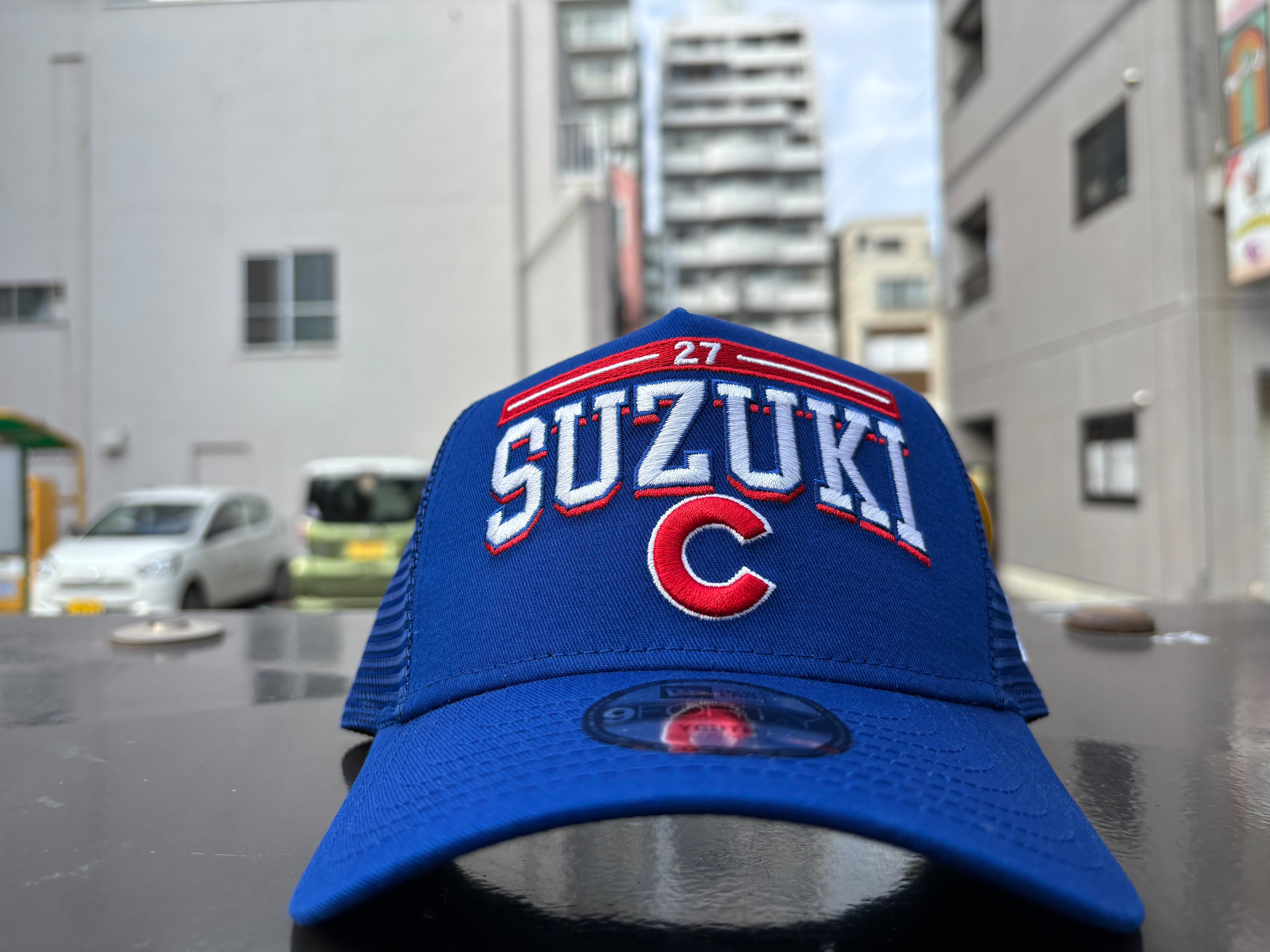 9FORTYをベースにフロント部を1枚パネルにして、上部でつまんだ独特のシルエットが特徴です。通気性の良いメッシュを採用しています。